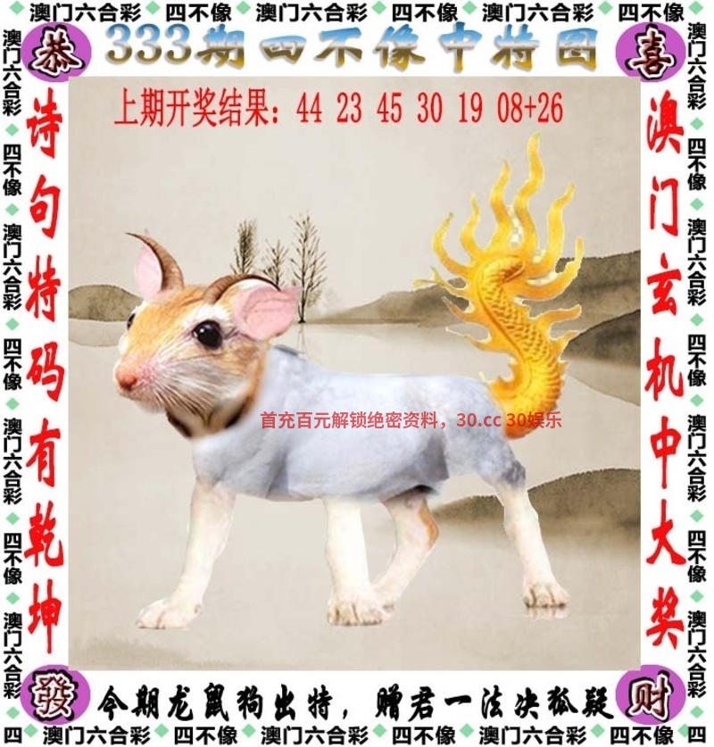 | 333期阴阳两肖╠阴肖+虎羊╣开:鼠06准 |